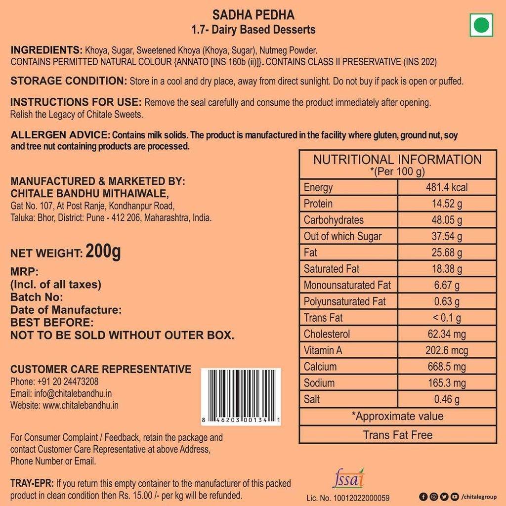 Chitale Sadha Pedha is made from the freshest and finest ingredients. A readymade sweet made of milk, sugar and khoya, is a very Authentic Sweet of India. It is distributed during special occasions as a mark of celebration.